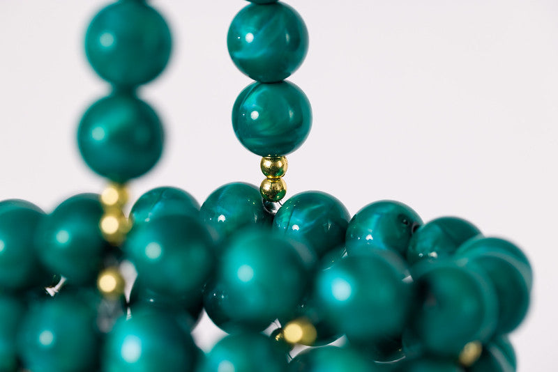 Refined and refreshing, the Emerald Mist anklet features shimmering emerald-green faceted glass beads accented with radiant gold spacers and a soft, frosted focal bead that adds a serene, airy touch.