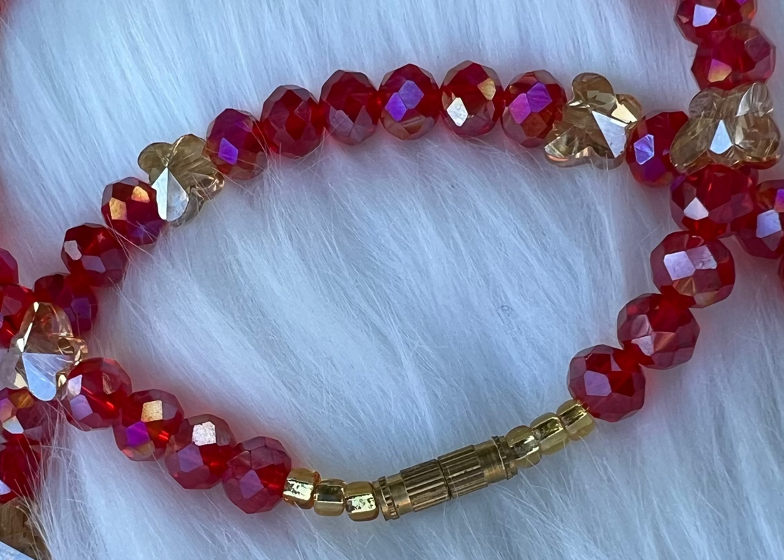Inspired by the glow of golden hour, the Sunset Wings anklet features fiery red faceted glass beads paired with radiant gold spacers and delicate butterfly-shaped amber crystals