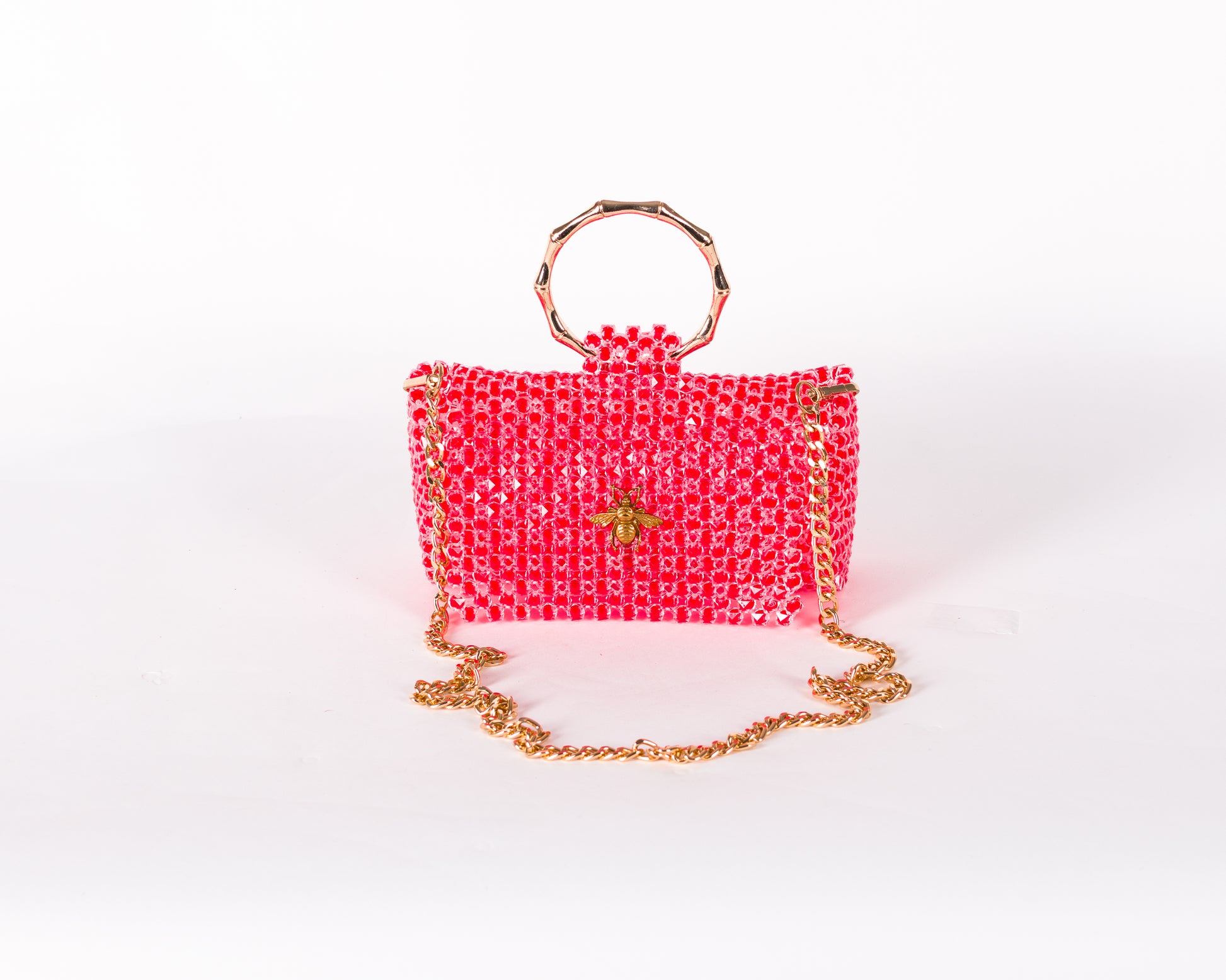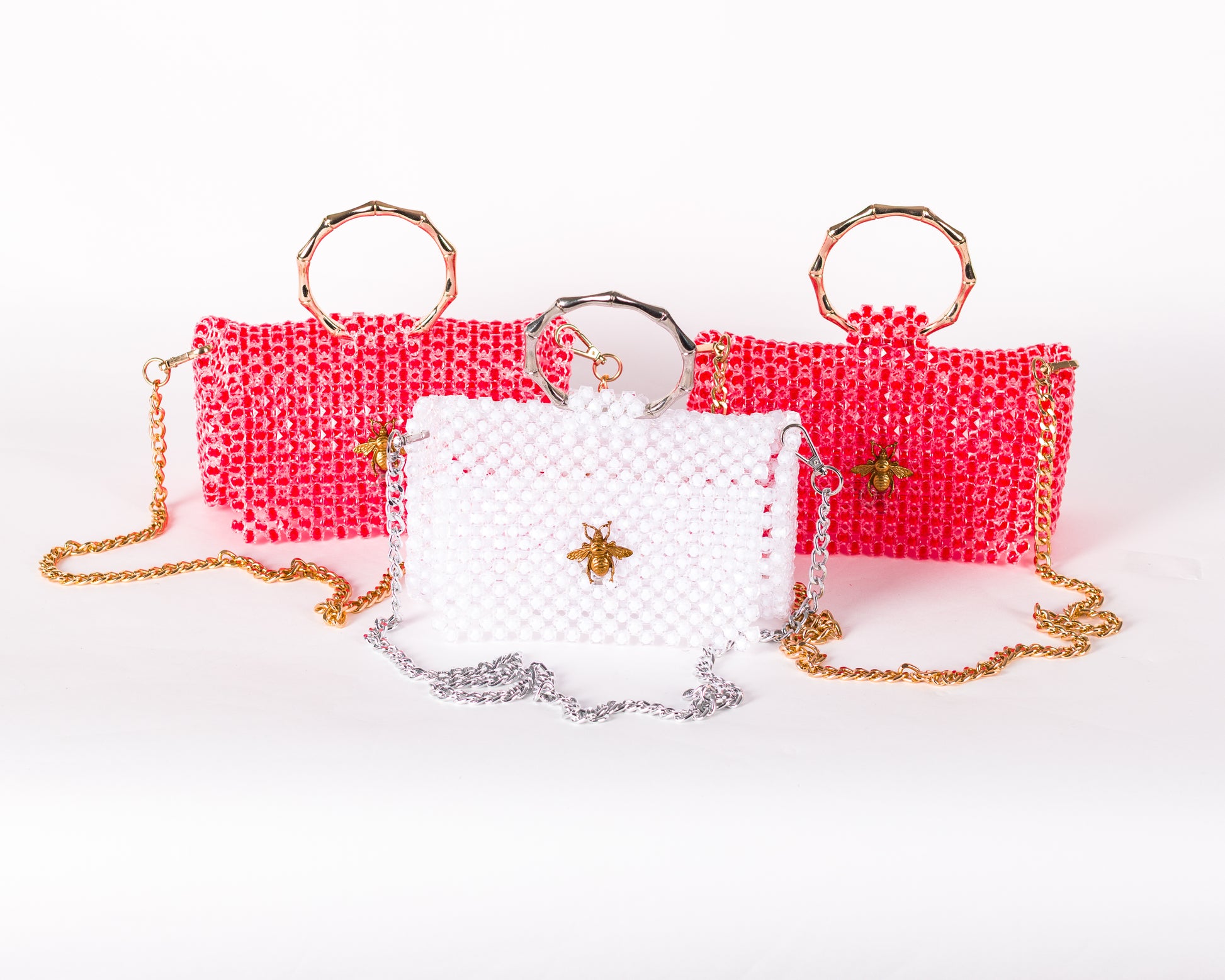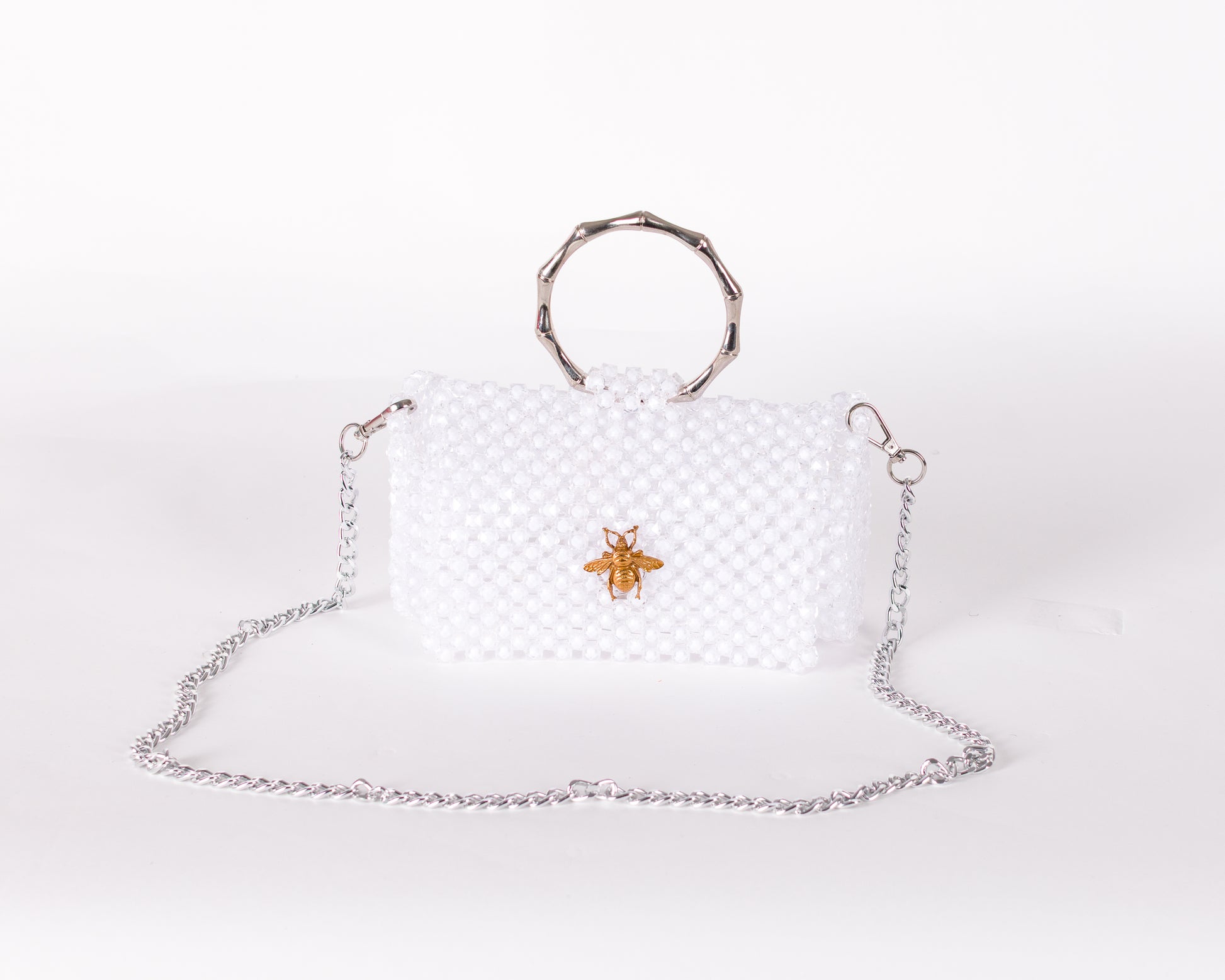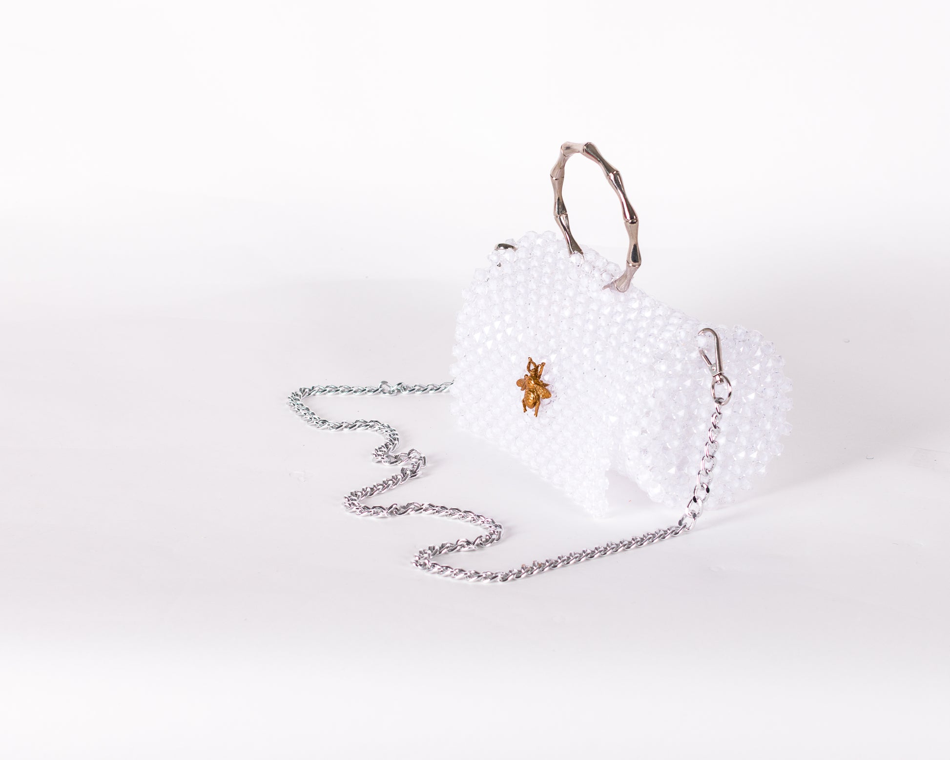 Sleek and sculptural, the Adomaa bag is a modern classic reimagined through the lens of African craftsmanship. Designed with shimmering crystal-cut beads and a bold cylindrical shape, this bag radiates quiet luxury. The textured bamboo-style handle adds an unexpected twist, while a delicate gold bee rests proudly as the emblem of bold femininity. Elegant yet versatile, Adomaa shines whether worn to a dinner party or styled casually on the go.