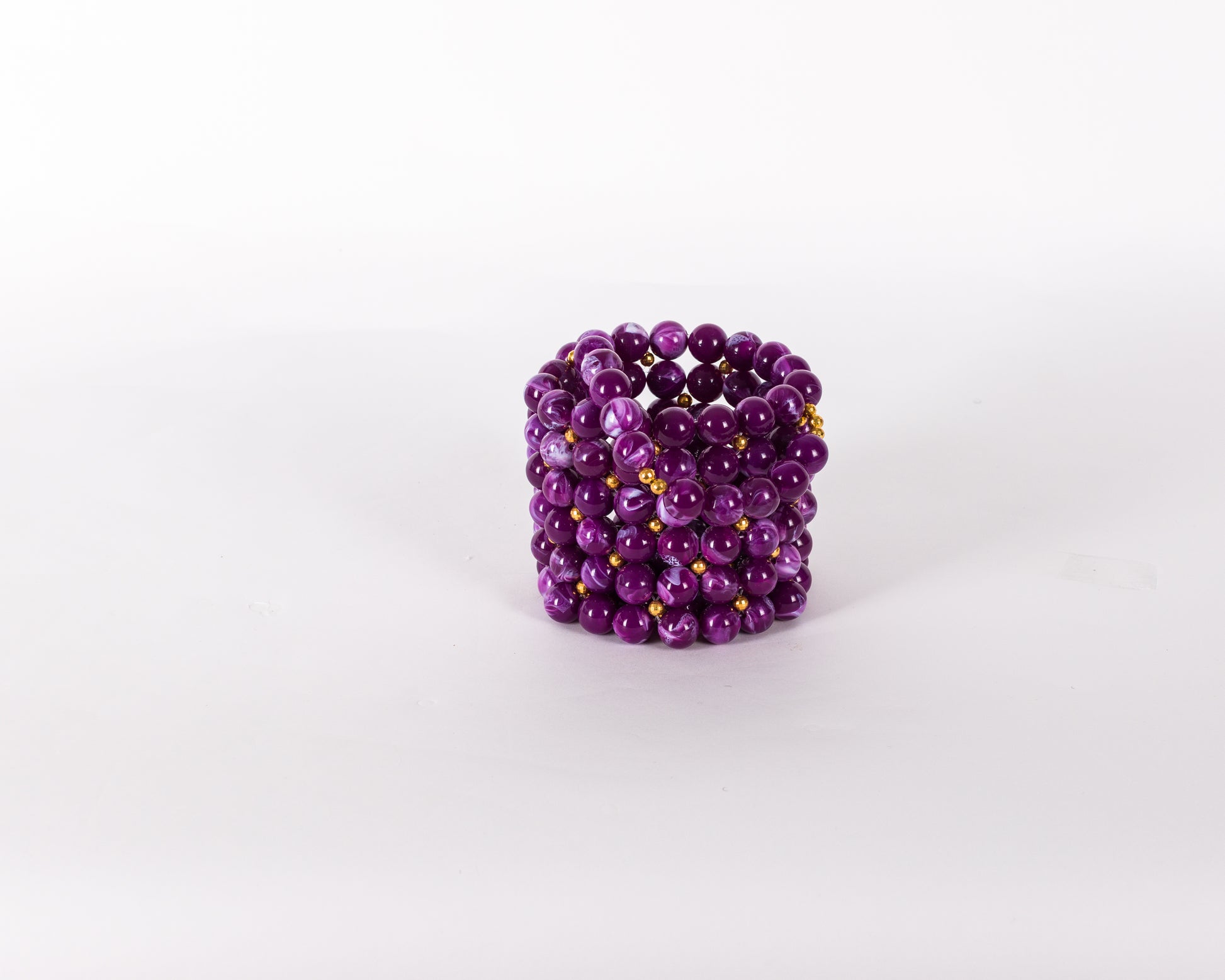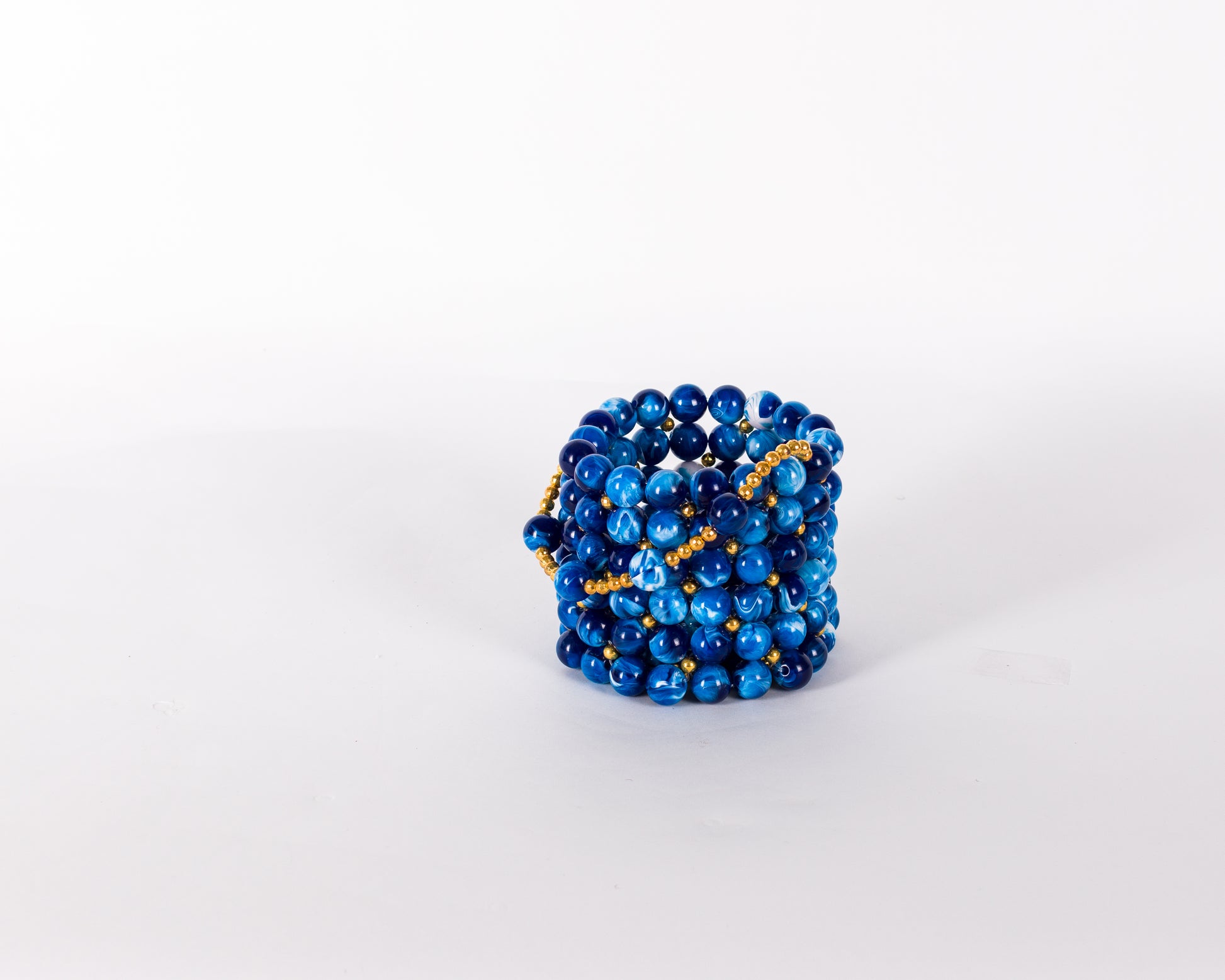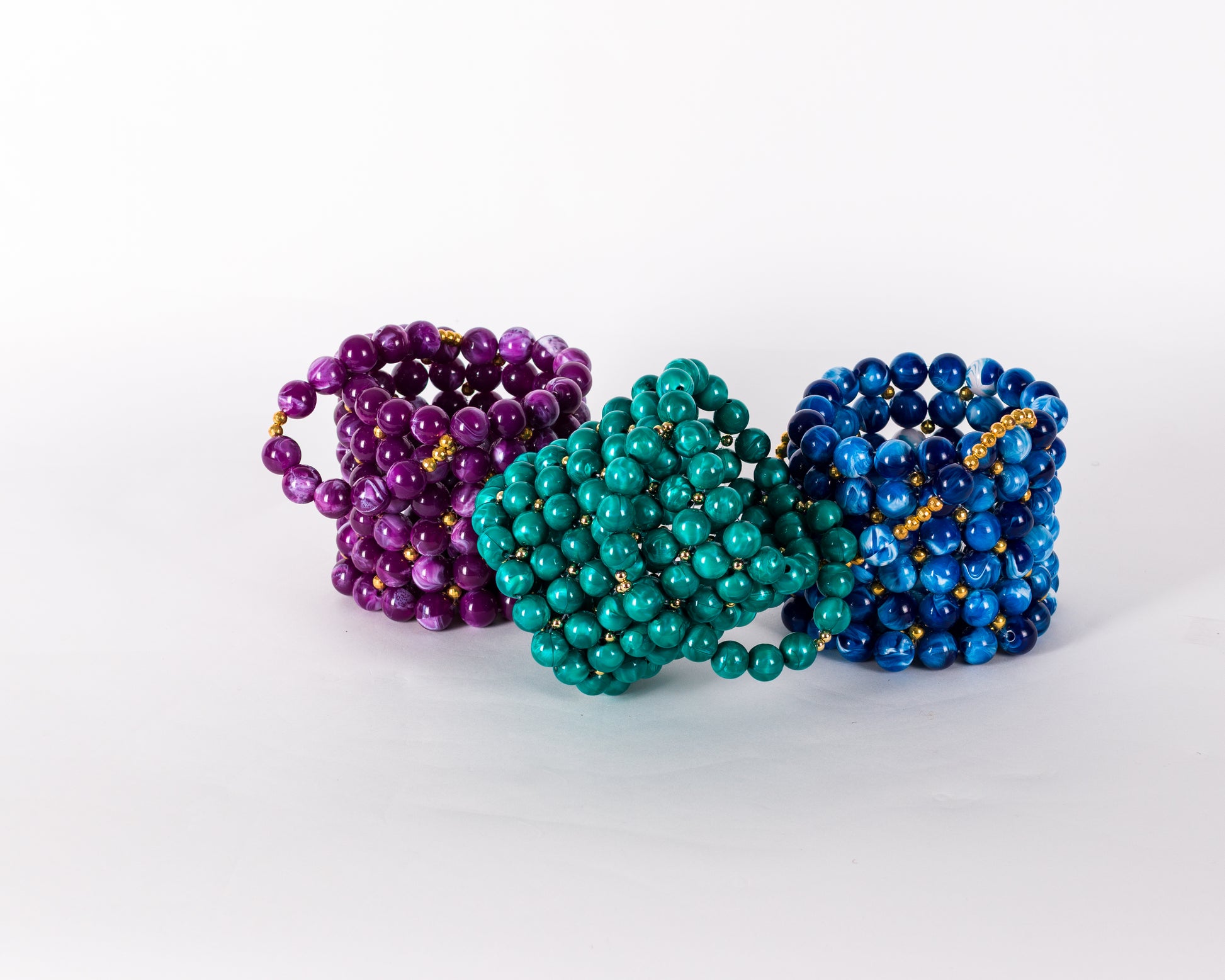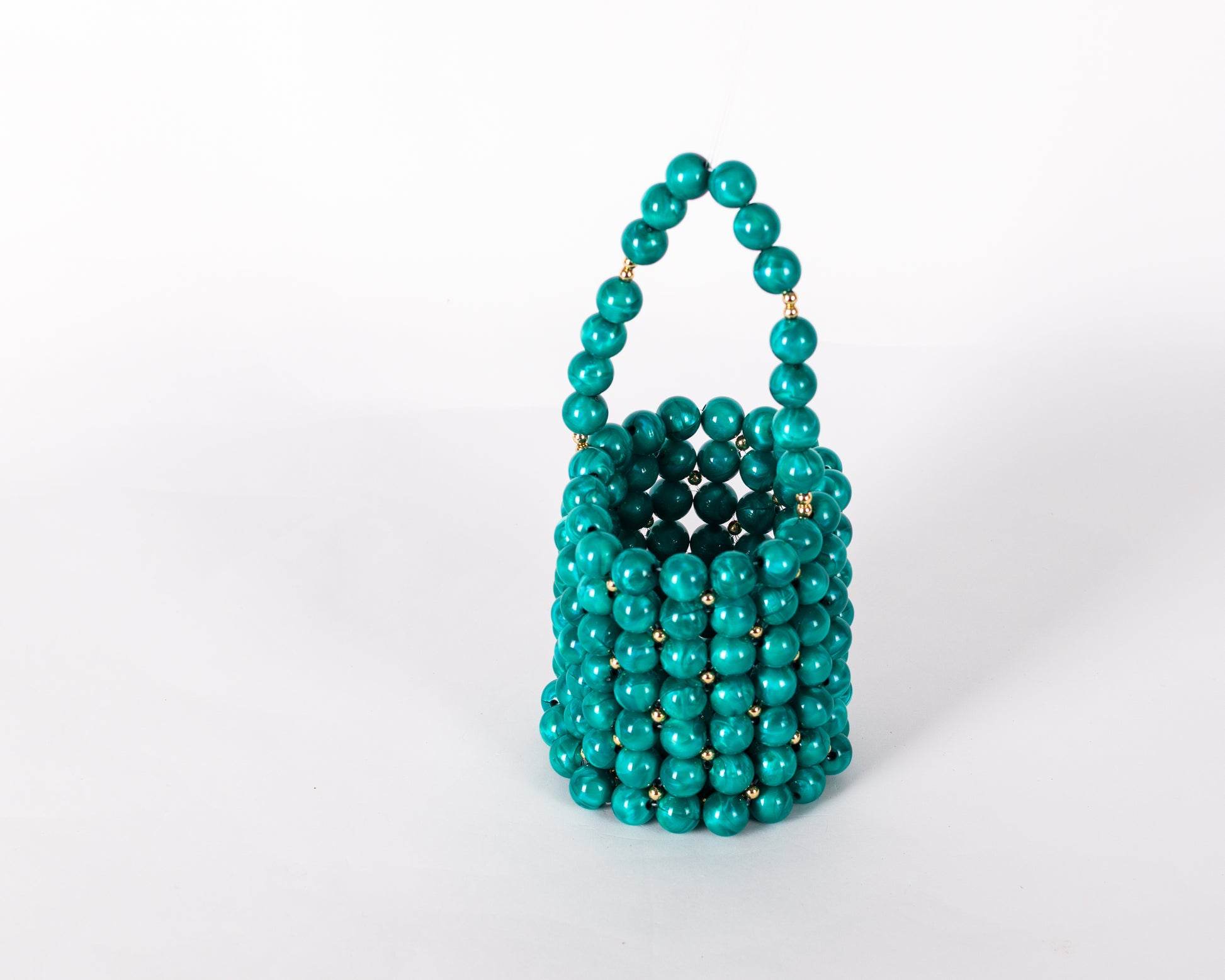 Distinct. Delicate. Designed to be admired. The Ahwenepa bag is a sculptural statement crafted from marbled beads in a rich, cylindrical silhouette. Its single rounded handle rests gracefully on top, while gleaming gold accents and a polished finish elevate its regal feel. This compact piece is a love letter to quality craftsmanship — a signature mark of Beaded Bee’s devotion to artful design.