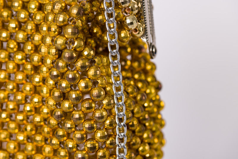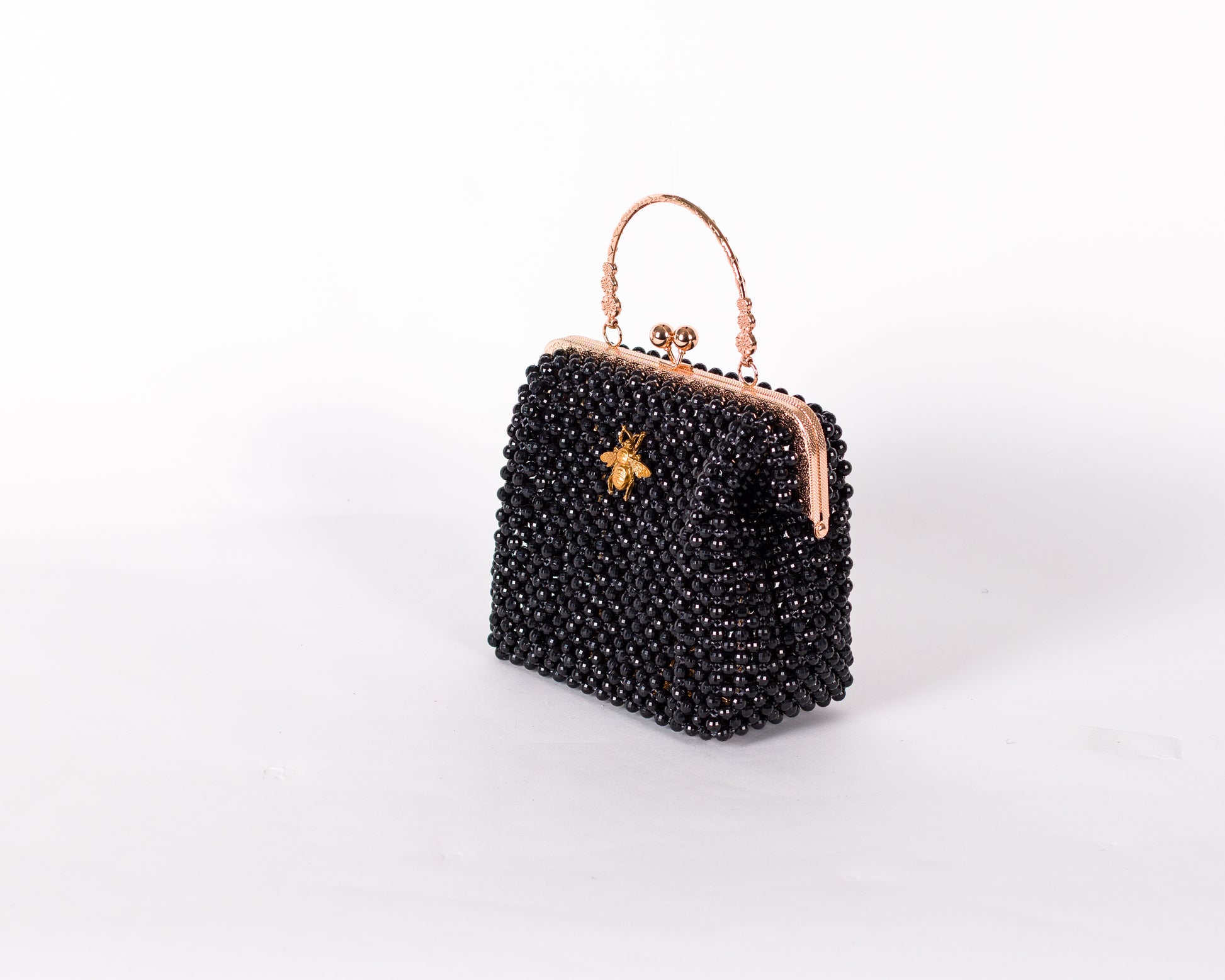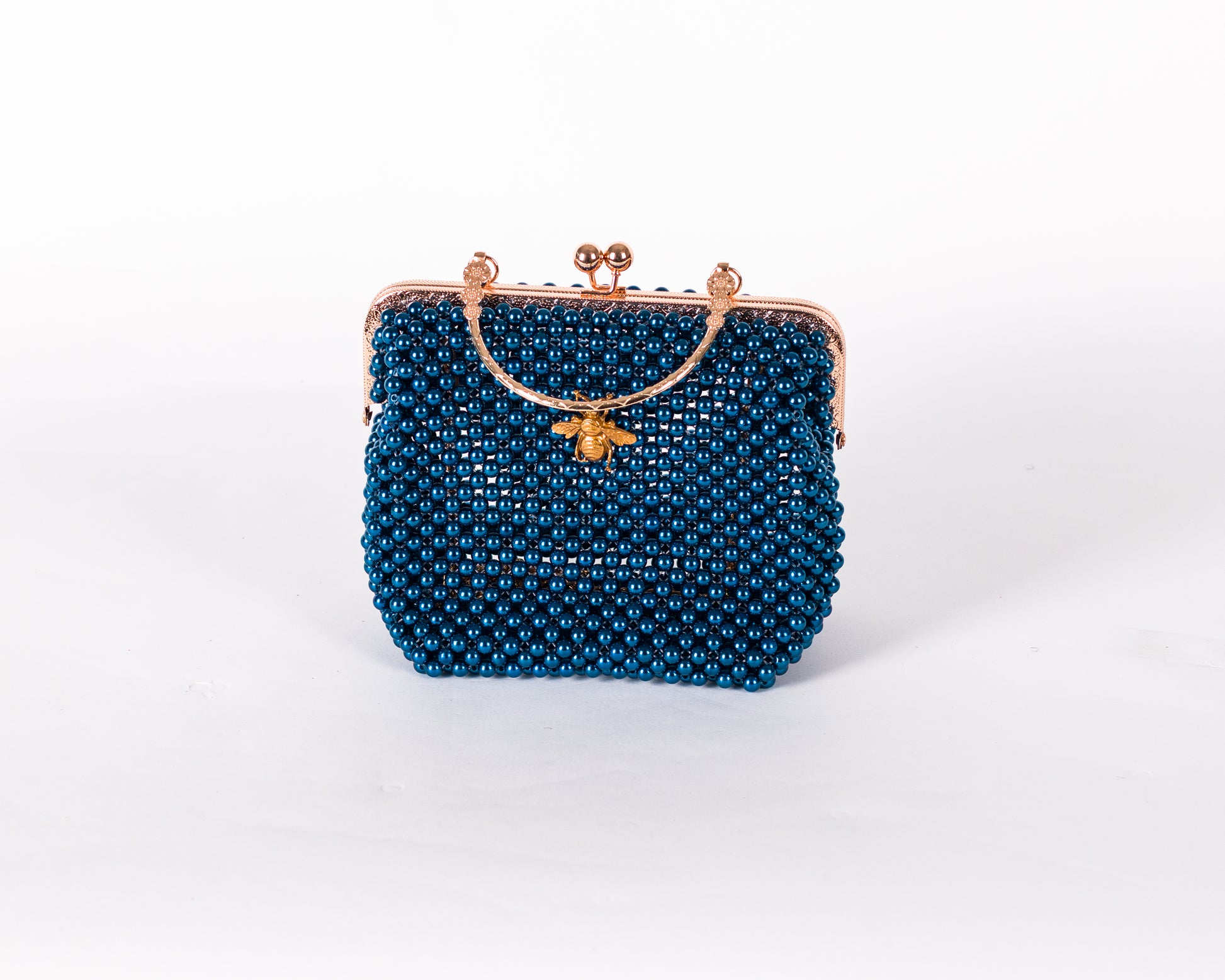 Bold, bright, and unmistakably luxe, the Awo bag is a celebration of radiant femininity. Wrapped in golden faceted beads and trimmed with ornate silver hardware, this piece is perfect for the woman who embraces opulence with elegance. Featuring Beaded Bee’s signature bee emblem, Awo is made for parties, ceremonies, and luminous entrances.
