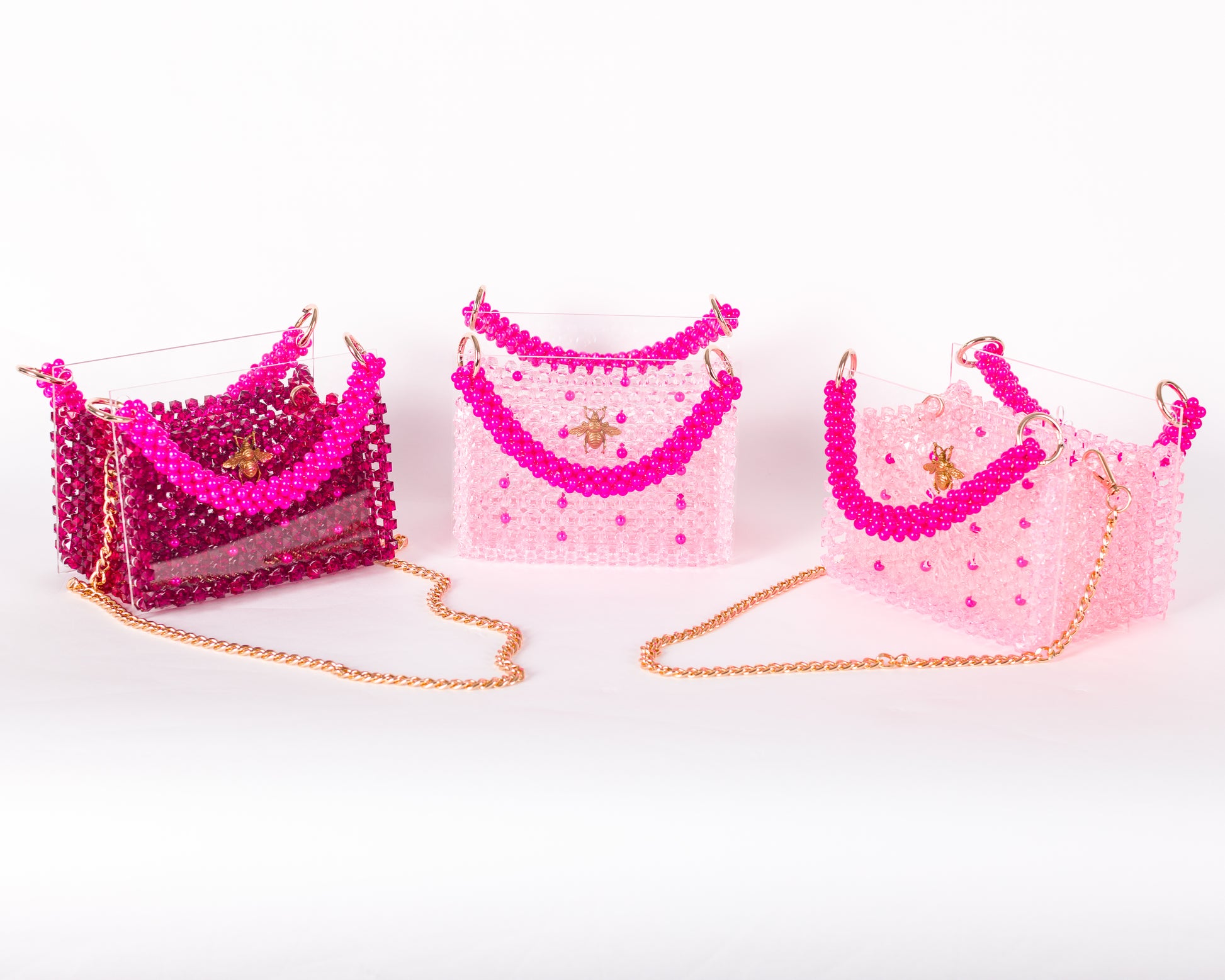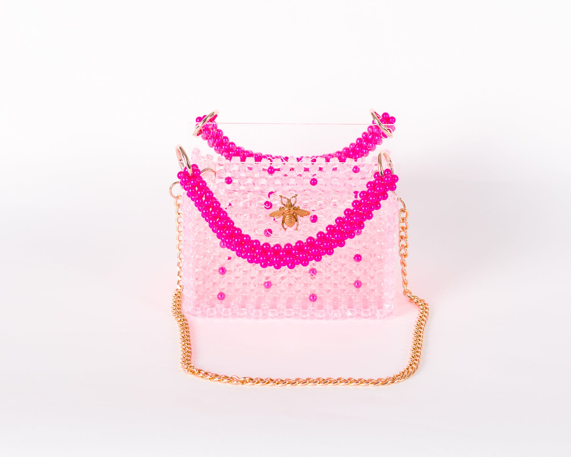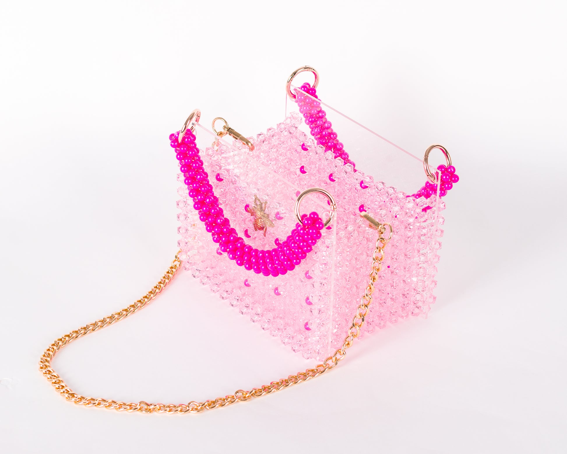 Playful. Polished. Unapologetically bold. The Dzifa bag is a burst of joyful energy in wearable form. With soft pink faceted beads and lively fuchsia detailing, it’s accented by sleek transparent side panels that add a modern edge to its handcrafted charm. The dual pink pearl handles and floral bead design make it a head-turner — perfect for the spirited soul with effortless style while the transparent shell lets the interior shimmer through. Whether you’re brunching, shopping, or simply turning heads, Dzifa brings a cheerful dose of bold femininity.