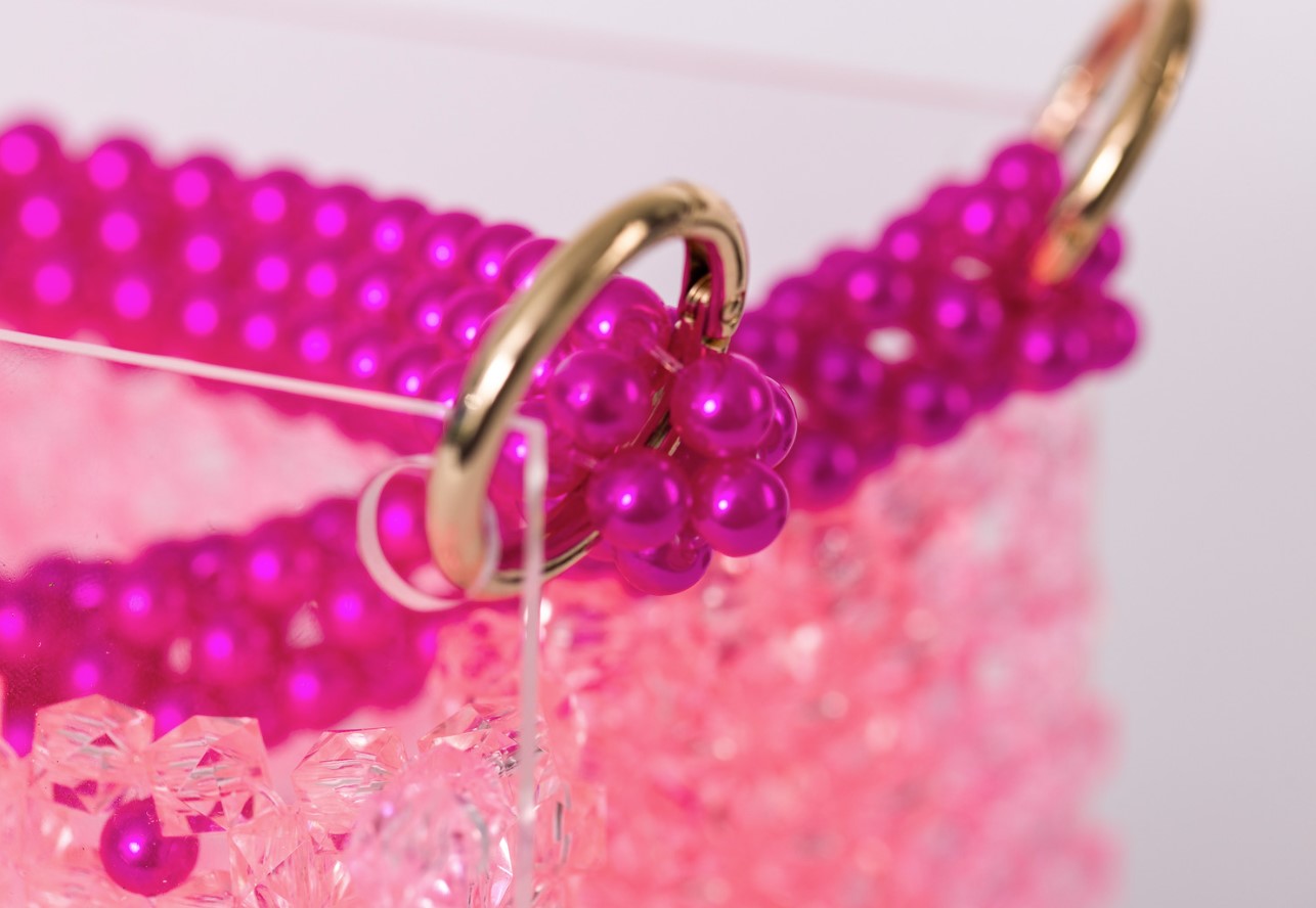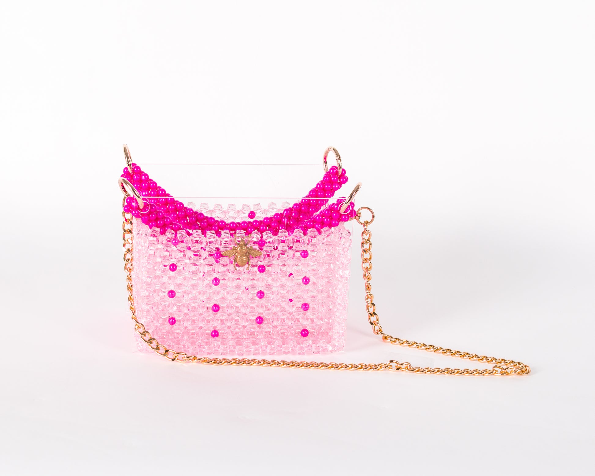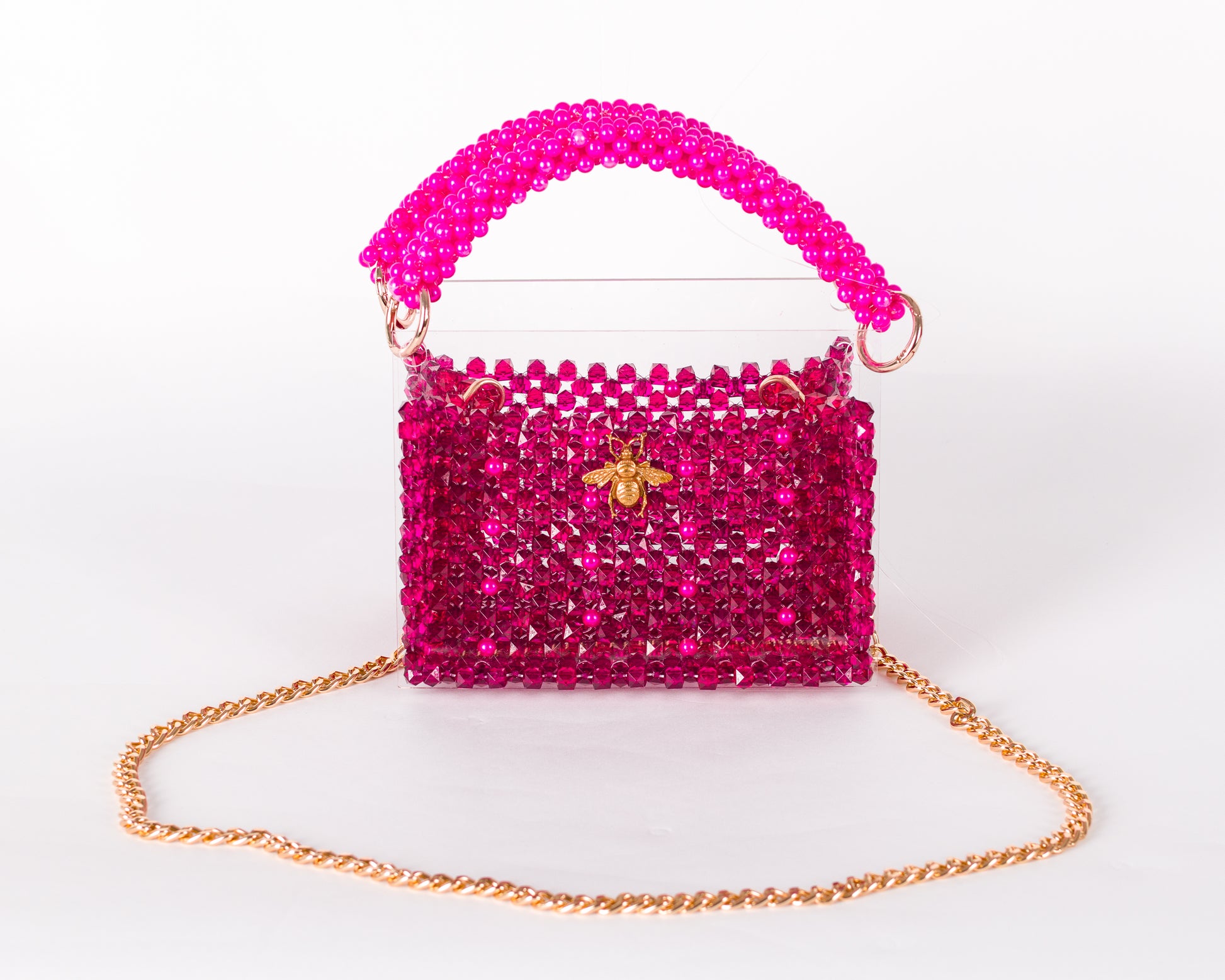 Playful. Polished. Unapologetically bold. The Dzifa bag is a burst of joyful energy in wearable form. With soft pink faceted beads and lively fuchsia detailing, it’s accented by sleek transparent side panels that add a modern edge to its handcrafted charm. The dual pink pearl handles and floral bead design make it a head-turner — perfect for the spirited soul with effortless style while the transparent shell lets the interior shimmer through. Whether you’re brunching, shopping, or simply turning heads, Dzifa brings a cheerful dose of bold femininity.