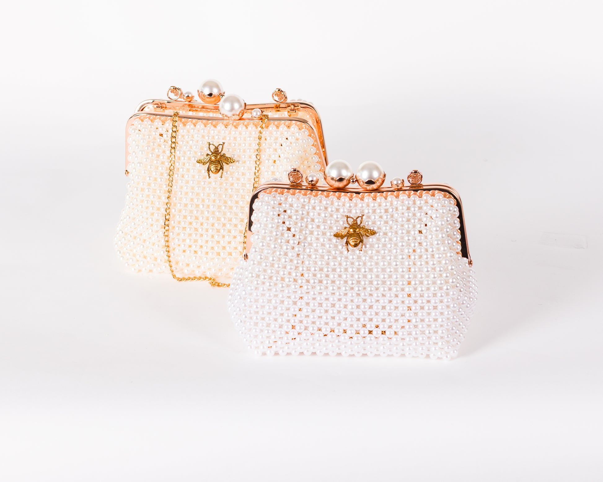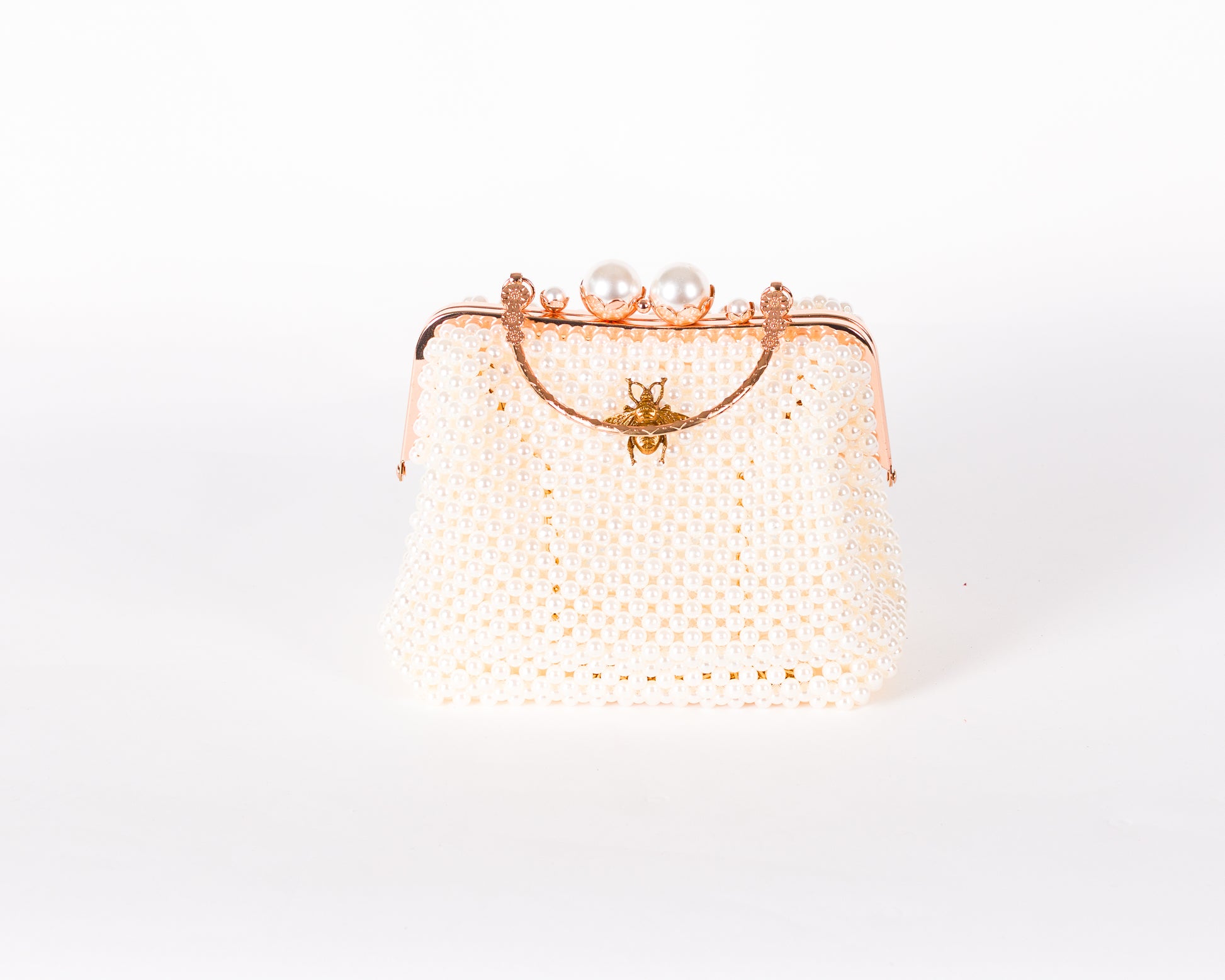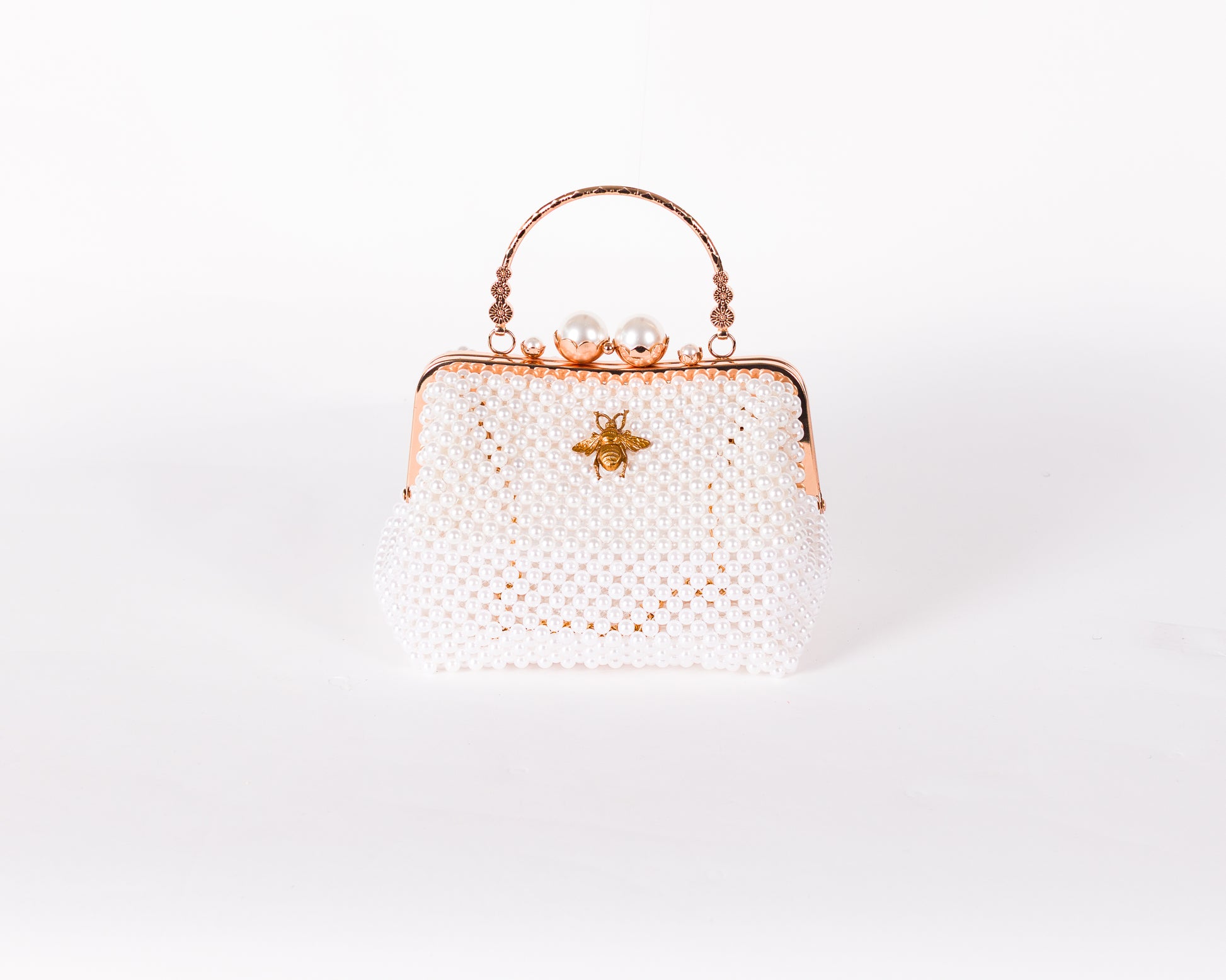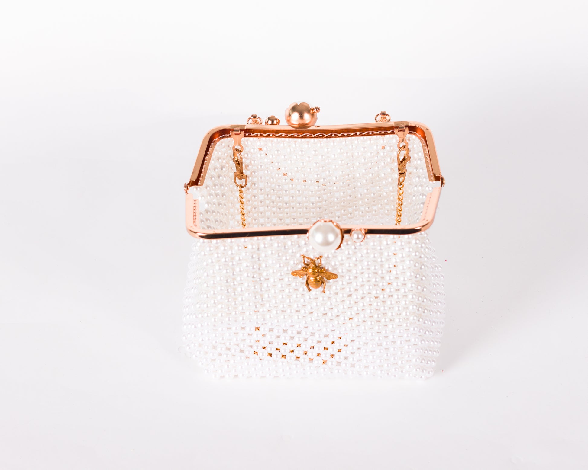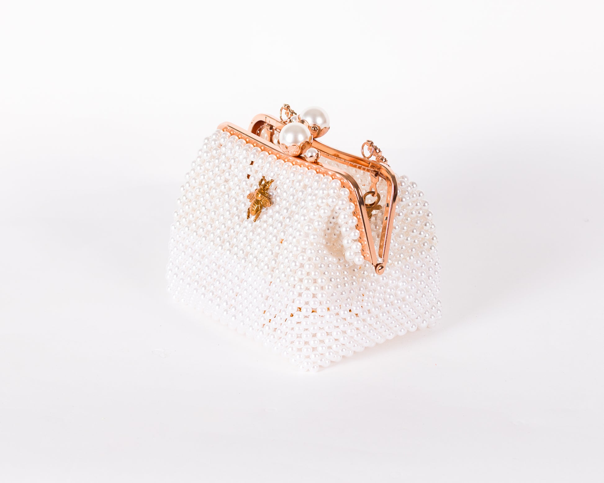 • Beaded exterior with gold-tone bee emblem