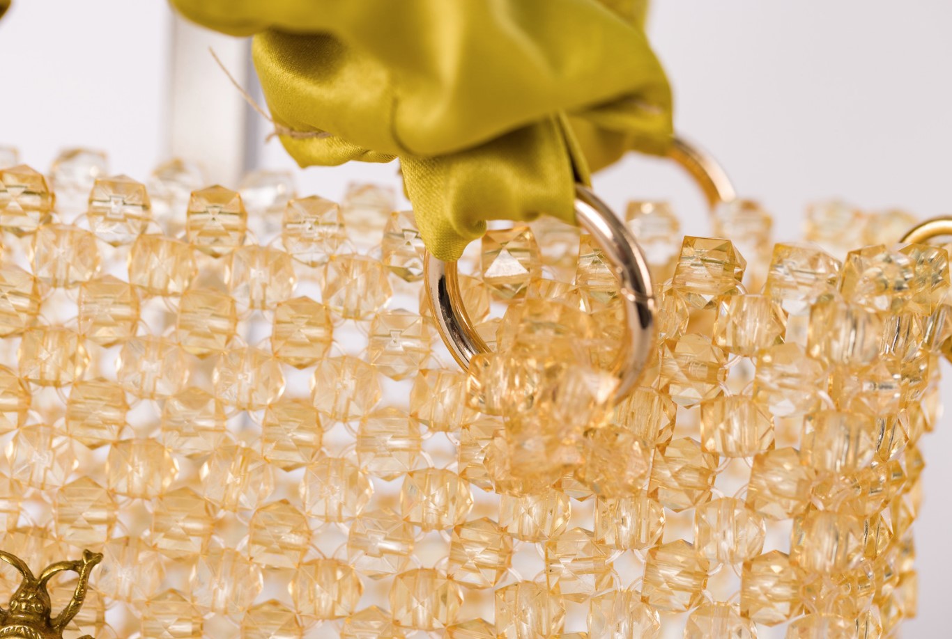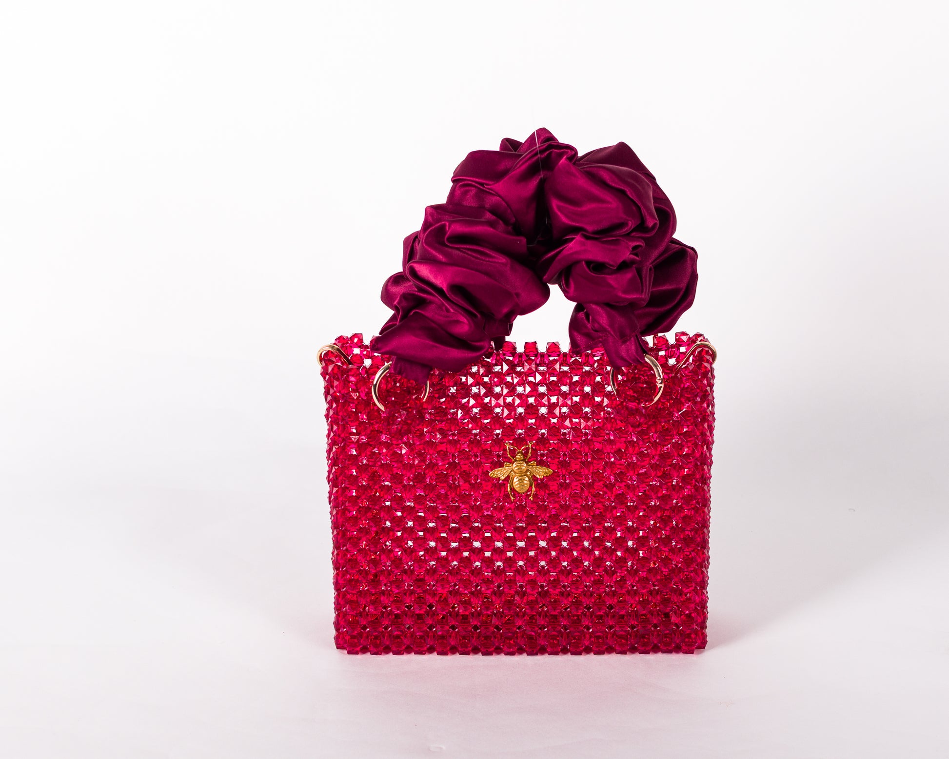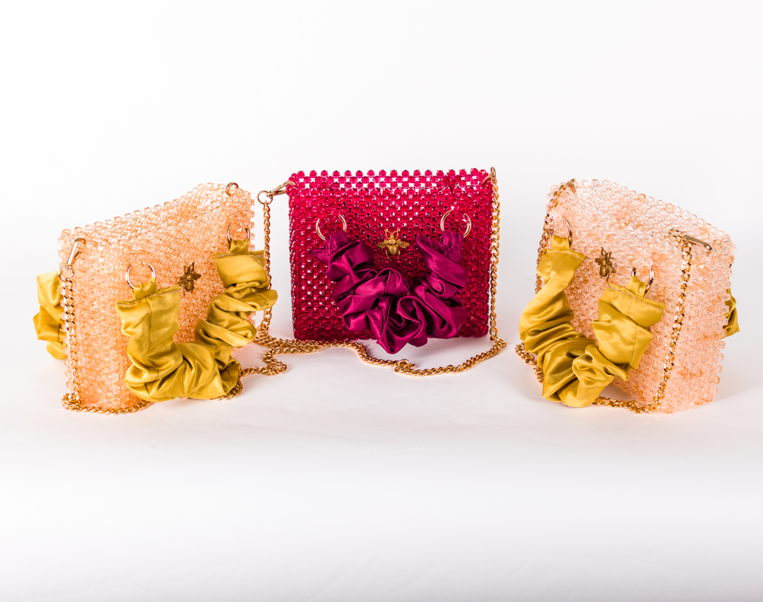 Bold. Playful. Unapologetic. The Nkyinkyim bag celebrates motion through design — a radiant blend of hand-beaded golden crystals, finished with a satin ruched handle in mustard yellow. This variant skips the acrylic base, allowing its full beaded silhouette to command the spotlight. A signature gold bee emblem anchors the bag in Beaded Bee’s identity — a fusion of elegance, energy, and Ghanaian spirit.
