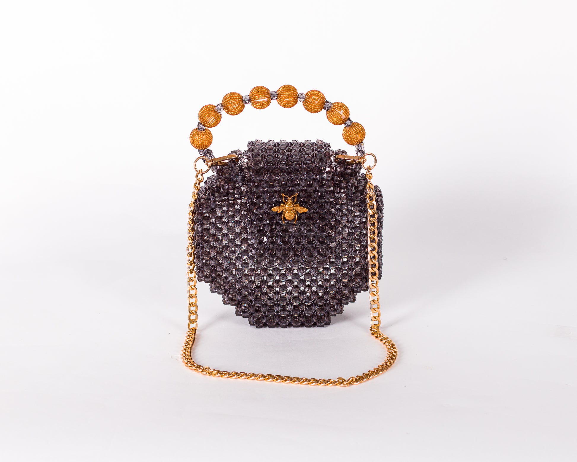 Bold. Regal. Magnetic. The Sika bag is where luxury meets legacy. Handcrafted with rich black crystal beads and crowned with a unique top handle made of round gold seed-beaded balls, this striking silhouette channels modern elegance through a Ghanaian lens. A gold bee emblem rests proudly at the front — a signature of Beaded Bee’s fusion of cultural pride and bold femininity.