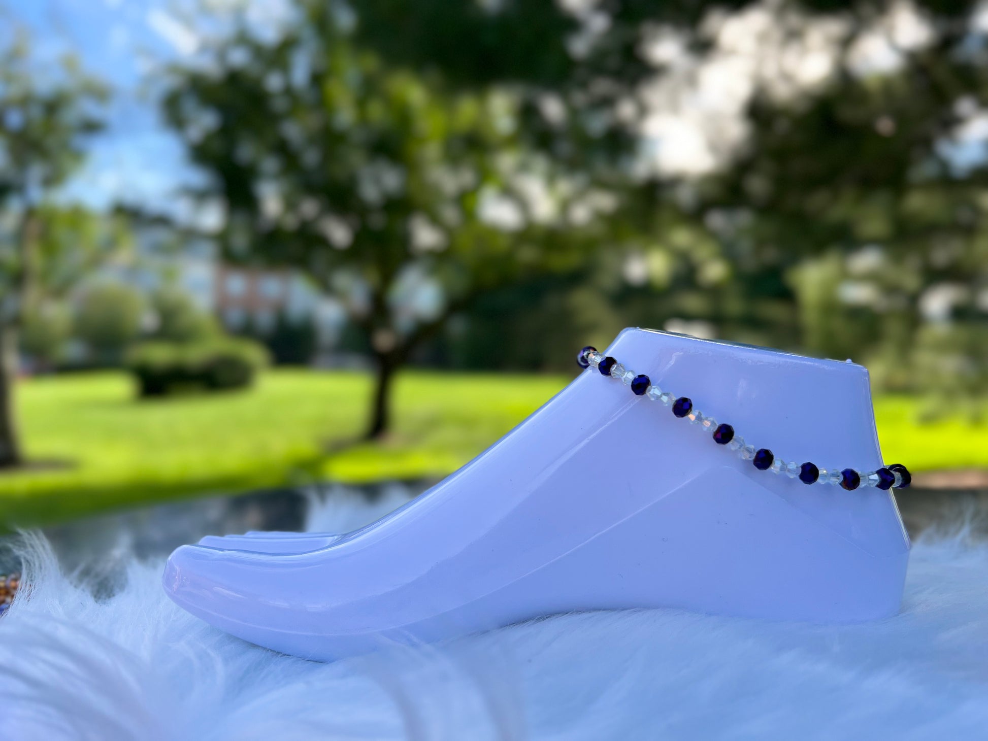 To preserve the brilliance and integrity of your anklet, avoid wearing it in hot baths, saunas, or while swimming. Store in a dry, cool place when not in use.